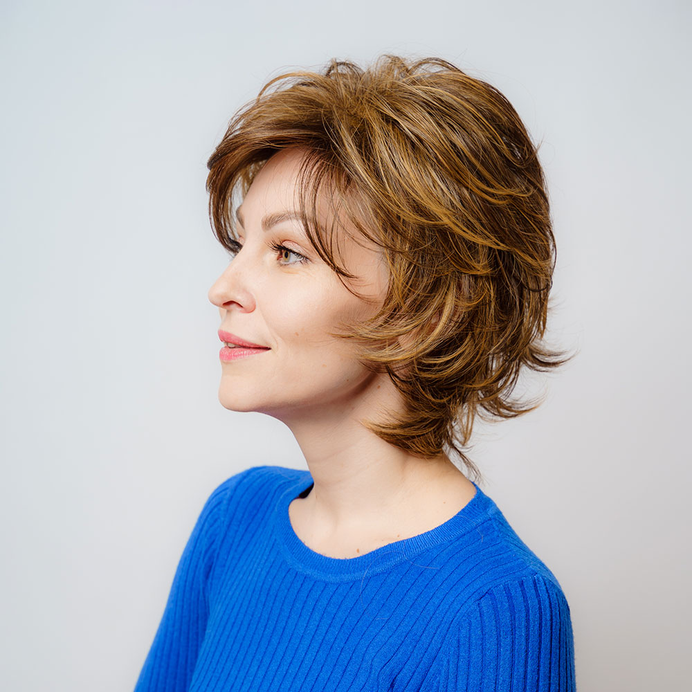 Lavina è una parrucca in fibra caratterizzata da una calotta in tessuto ed inserti di velluto. I colori appaiono brillanti e ben proporzionati tra loro: qui è il caso del castano medio che ben si integra con le meches biondo medio. Gli altri colori disponibili sono i castani, i biondi, rossi e grigio chiarissimo.